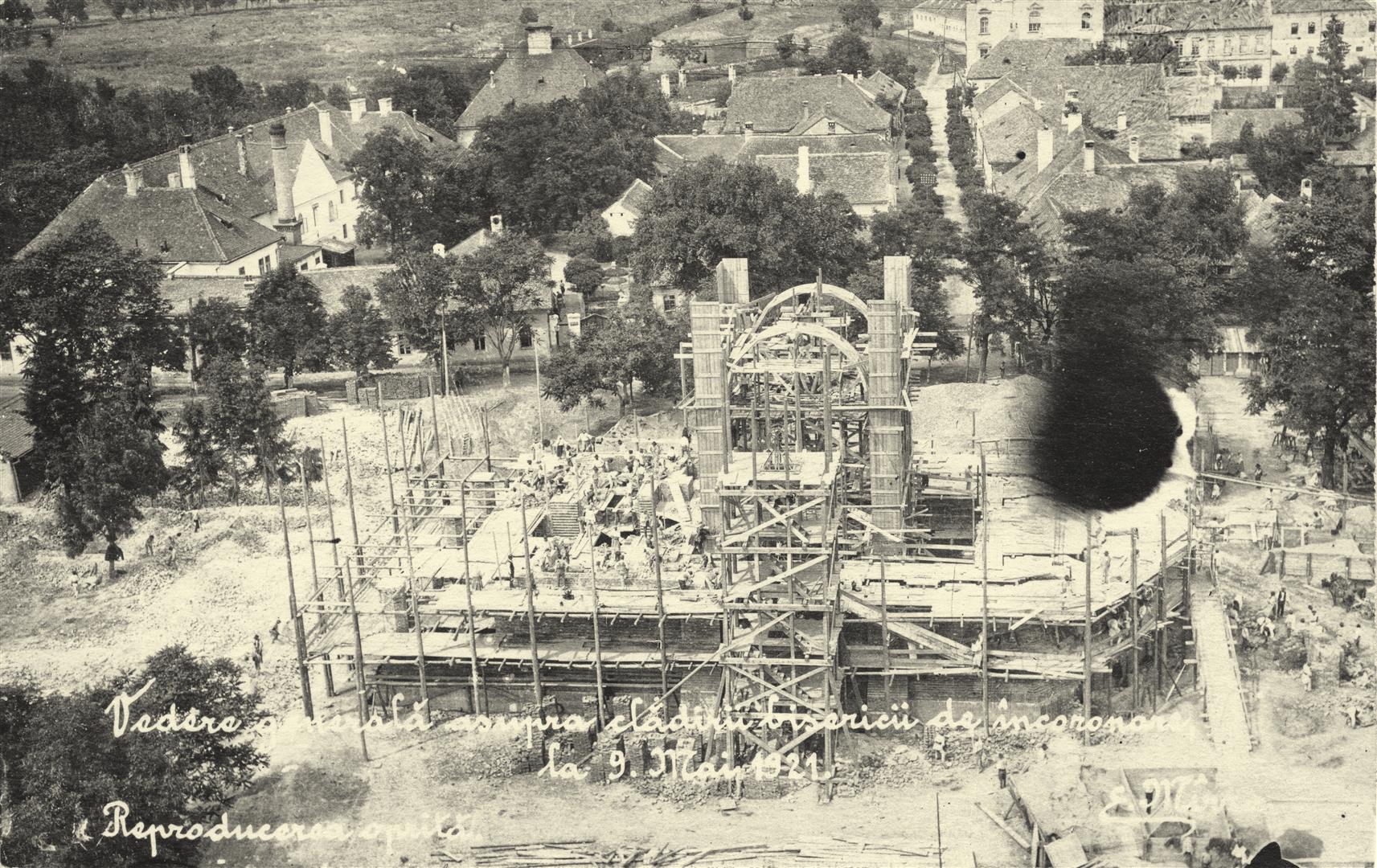 The building work started on 28 March, the second day of Easter of 1921. In June the church had already been erected and in August the work on the bell tower was completed. On 8 September the great cross was mounted on the great steeple and at the beginning of October the bells were installed. On 1 December 1921 the scaffolding was erected and during the next ten months the frescoes were painted. On 8 October 1922, four prelates carried out the consecration ceremony, headed by Nicolae, the metropolitan of Transylvania. The Coronation Cathedral was ready for its sovereigns.(V.M.)
